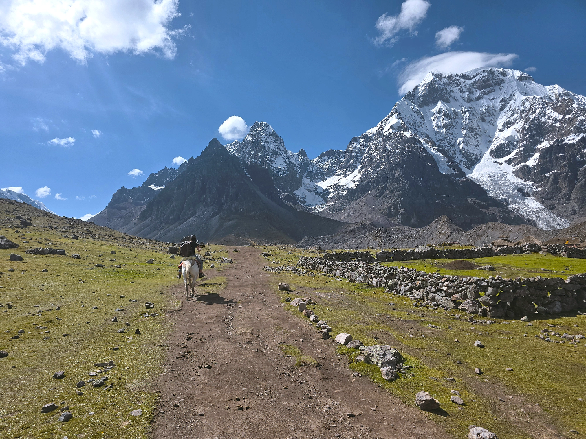 The experience begins in the traditional Andean village of Pacchanta, a community located at the foothills of the sacred Ausangate massif. From here, you will follow quiet mountain trails that cross untouched landscapes rarely visited by hikers. Riding at a comfortable and steady pace allows you to fully appreciate the silence of the highlands, the immense scale of the scenery, and the constantly changing colors of the alpine terrain.