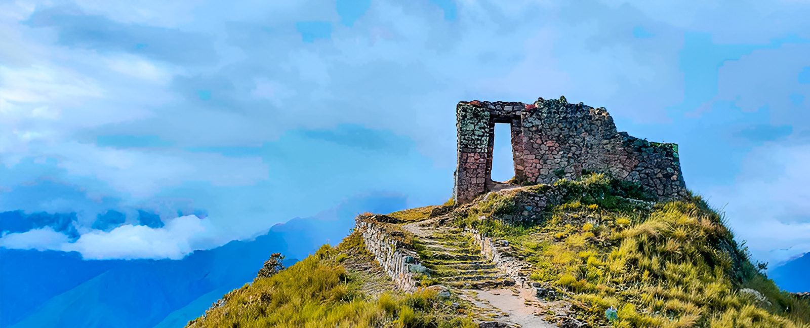 After this site, you will continue up the mountain for another 1 hour to reach Sungate (3650 m/ 11 972 ft). Sungate is located on top of a hill whose gateway overlooks Veronica Mountain (Wakaywillka Mt). The area has not yet been adequately investigated, although it is believed that the site was built to worship the mountain gods, especially Veronica Mountain and the sun god. Today, some remains of water channels, walls and Inca trails are still visible. The highlight of this hike is the view of the Veronica Mountain through the sun gate, a great opportunity to photograph a postcard perfect view of Peru.